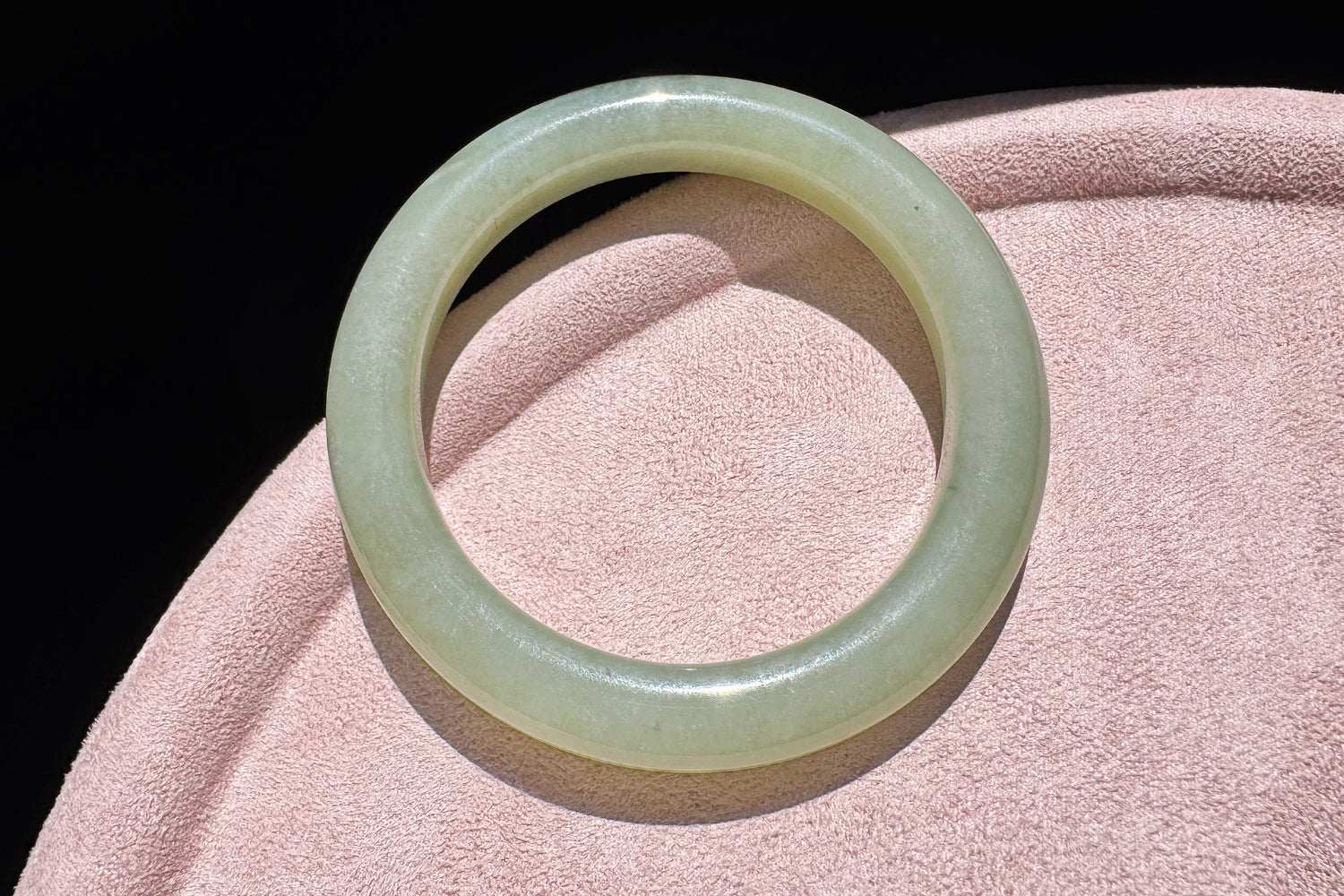 56mm Natural Hetian Nephrite Jade Bangle in Light Green Color, Icy Nephrite Bangle, 天然和田玉青海料晴水色圆镯手镯