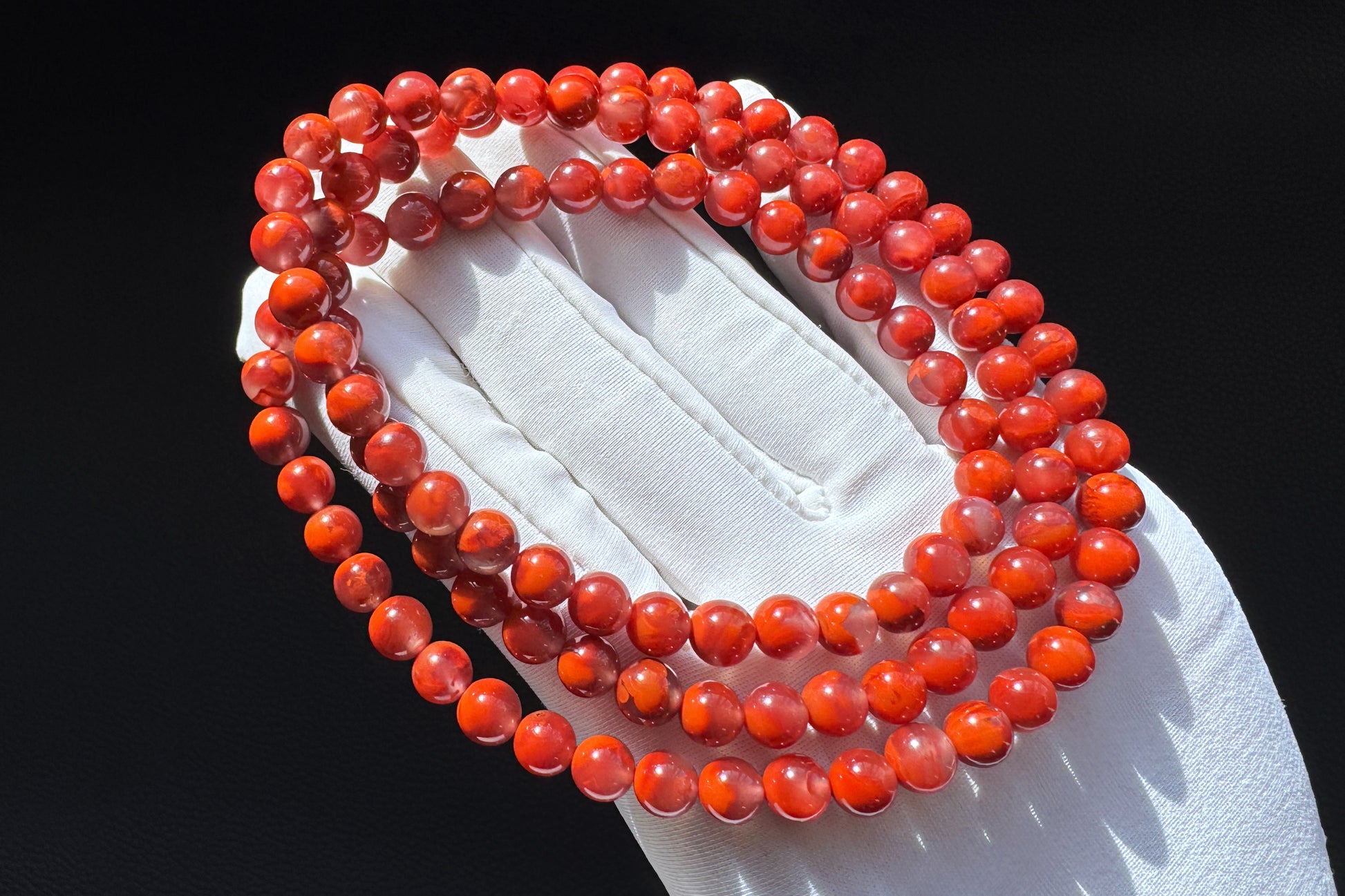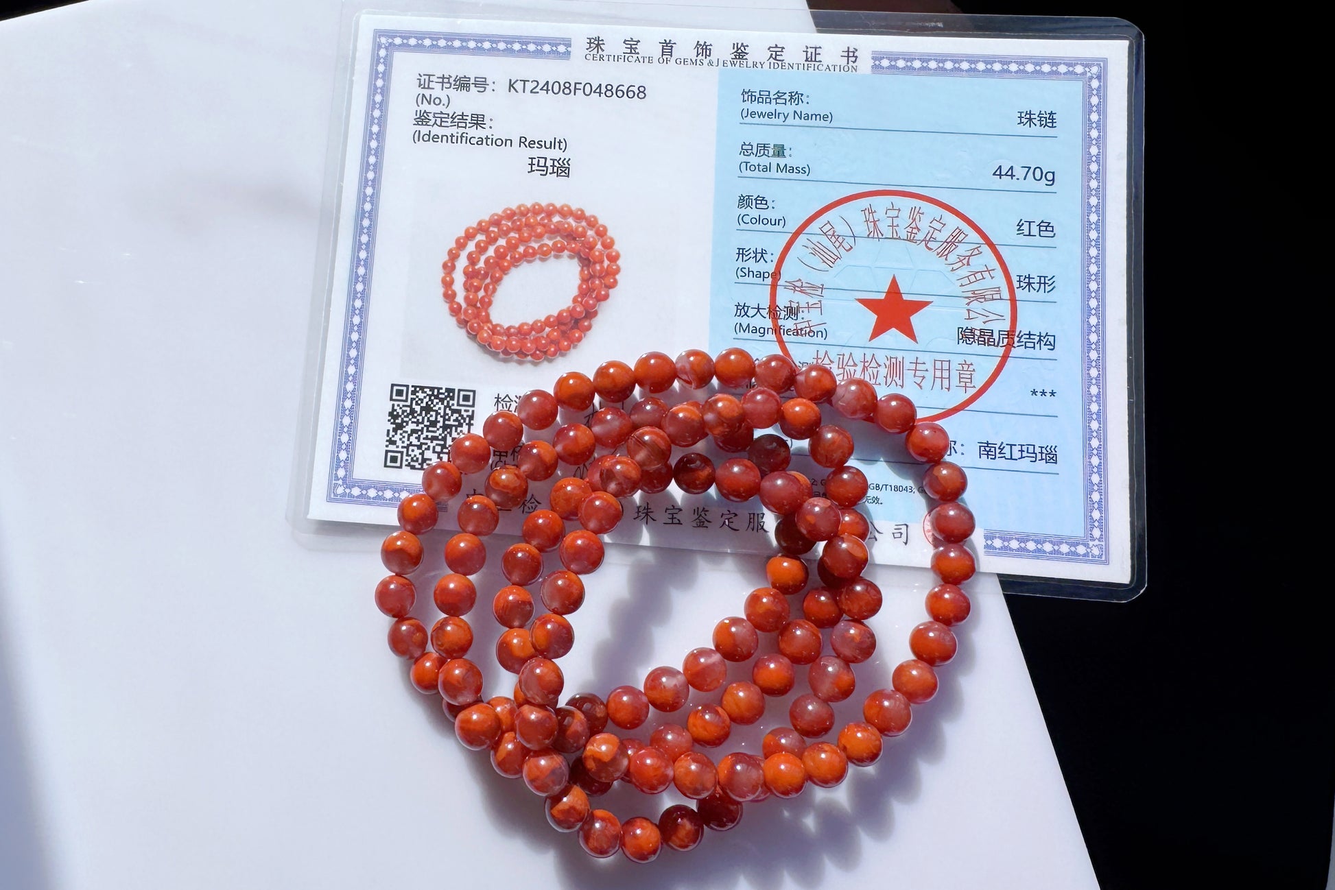 Certified Natural Nanhong Agate Bracelet, Nanhong Bracelet, Untreated Nanhong Agate Beads Jelly Like Texture, 天然南红玛瑙火焰纹圆珠多圈手串