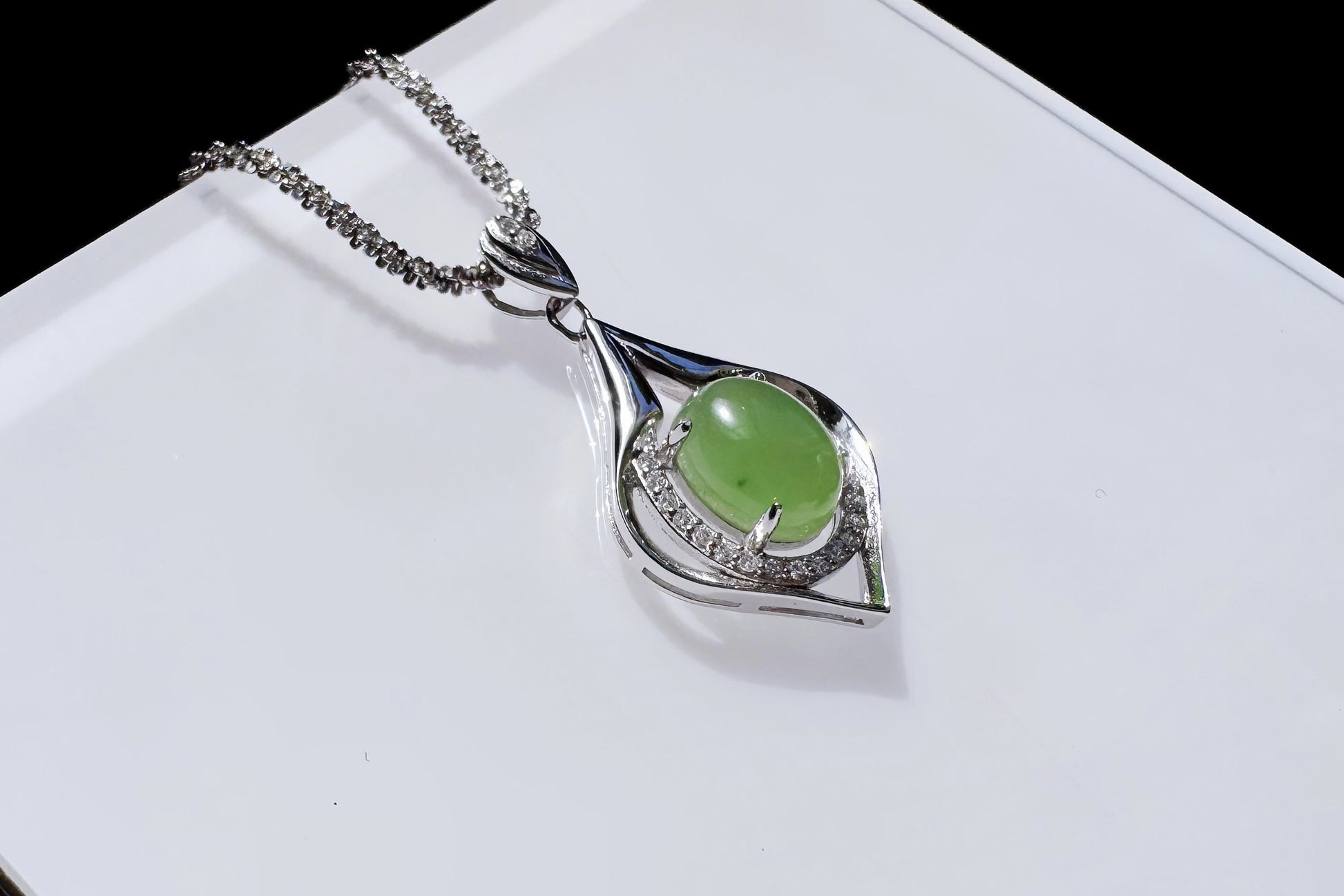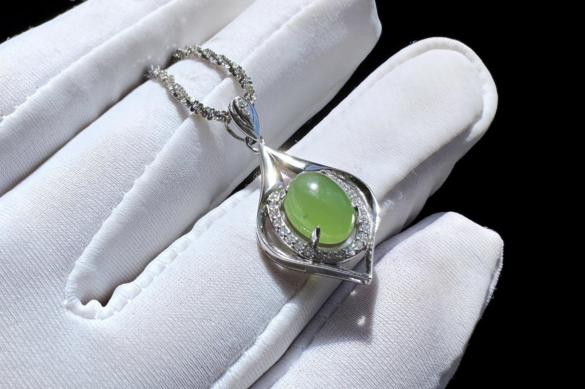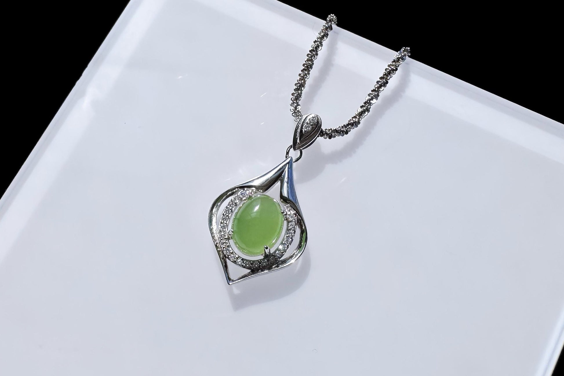 High Grade Natural Green Nephrite In S925 Sterling Silver Setting, Green Nephrite Silver Pendant, 天然碧玉S925银吊坠