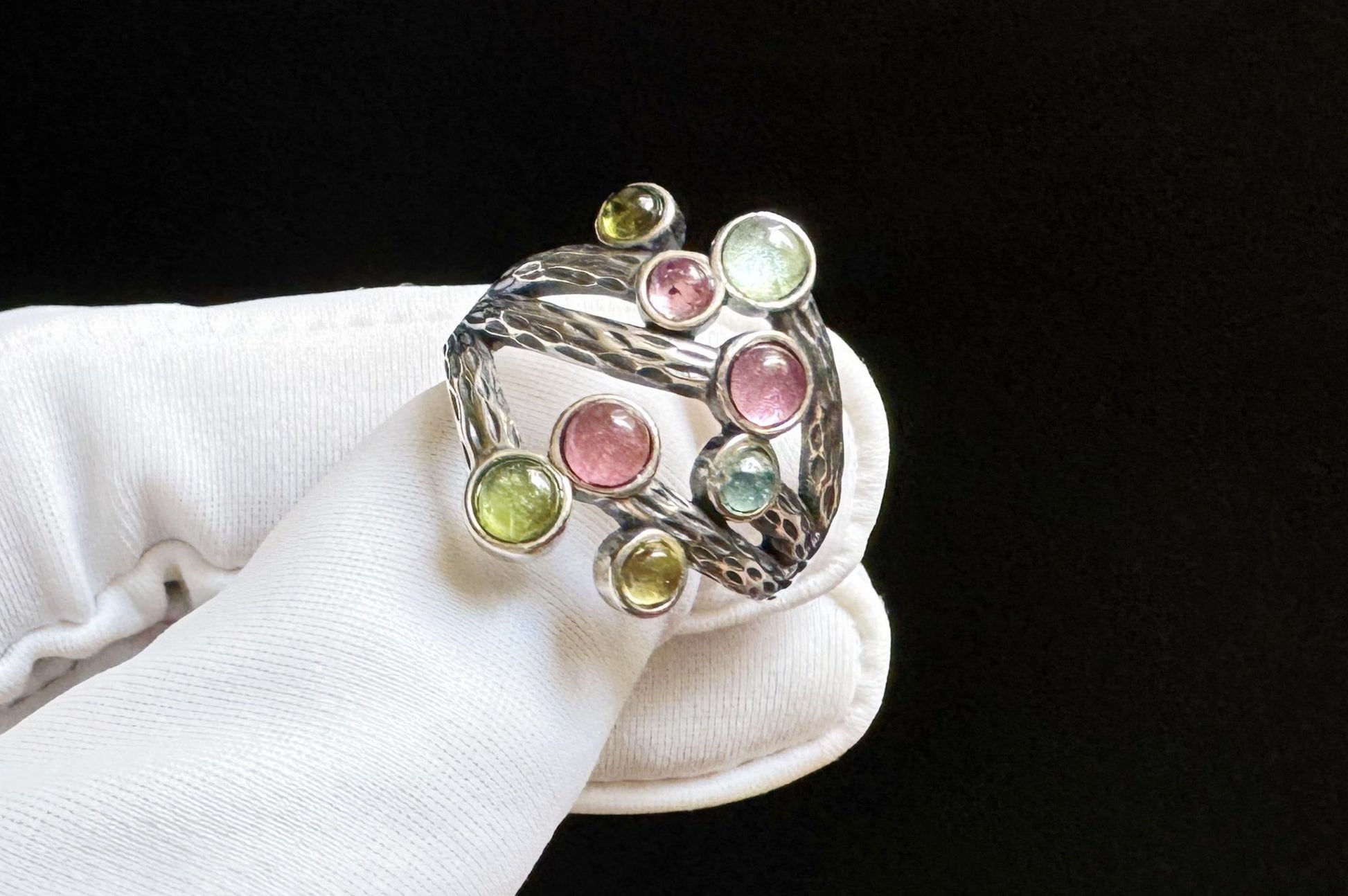 Natural Rainbow Tourmaline in Premium S925 Thick Silver Handmade Ring, Mermaid Tourmaline Ring, 天然巴西老料美人鱼色系碧玺肌理枝条S925厚银戒指