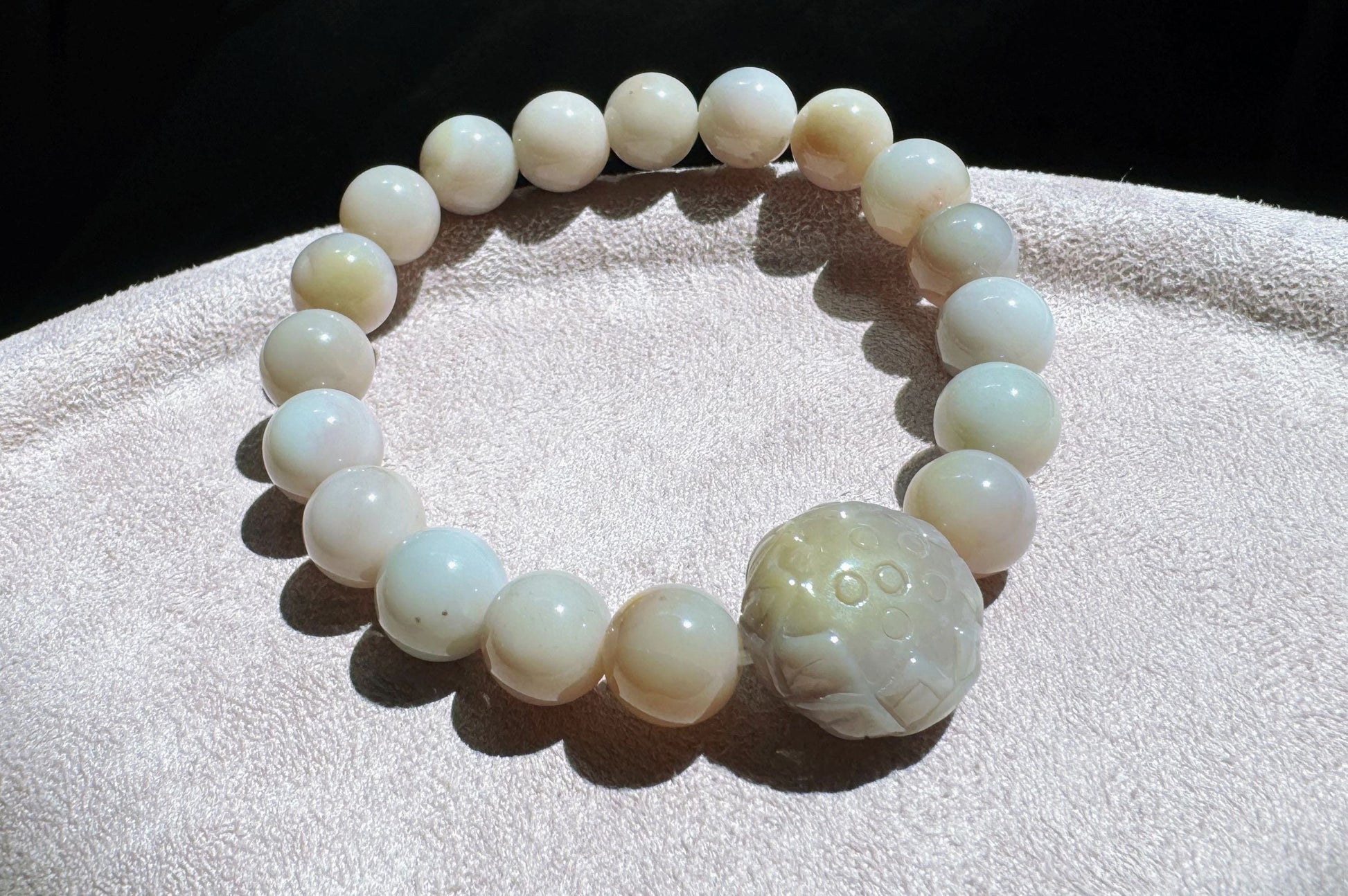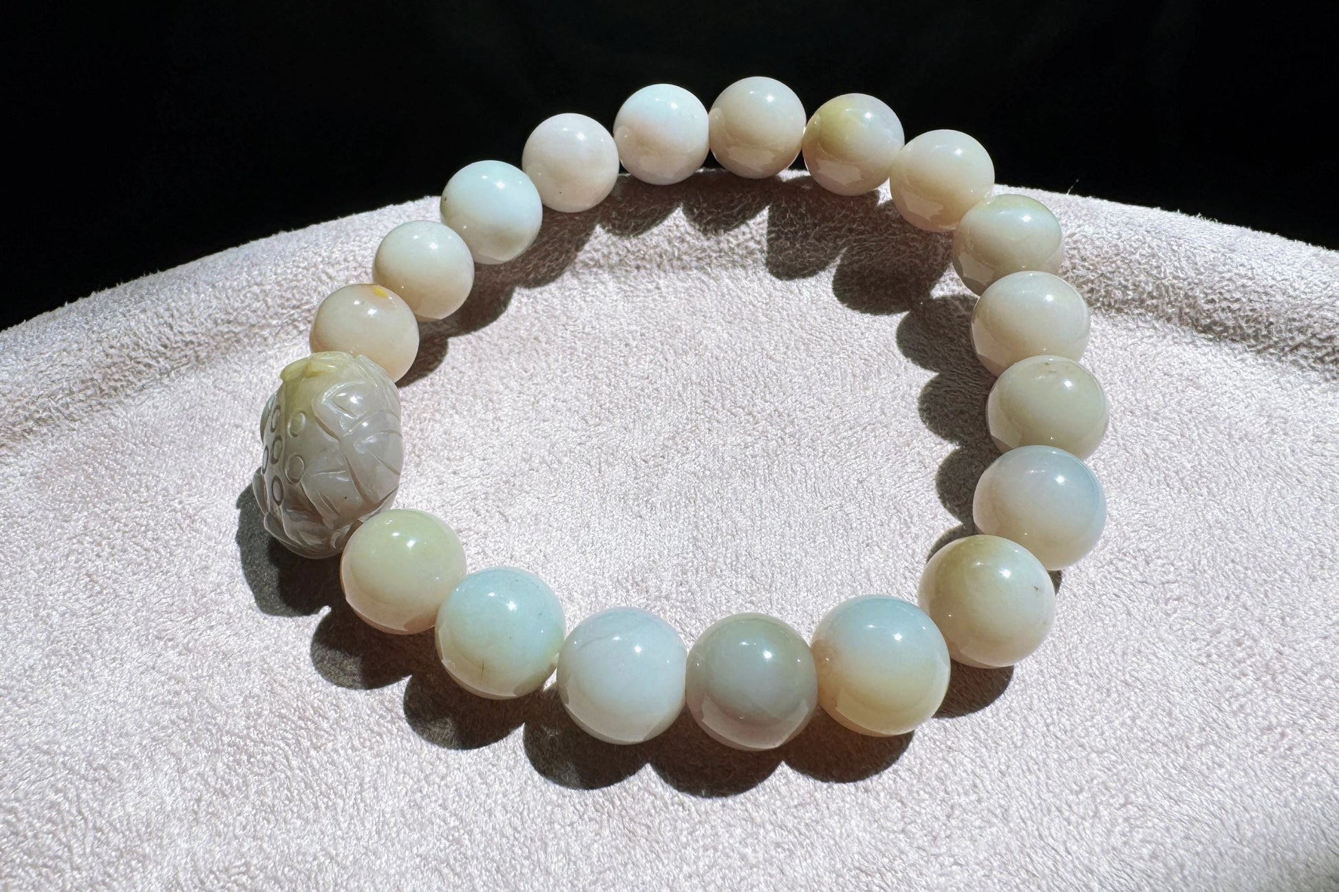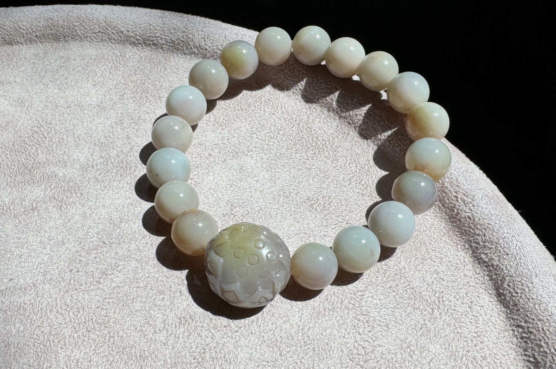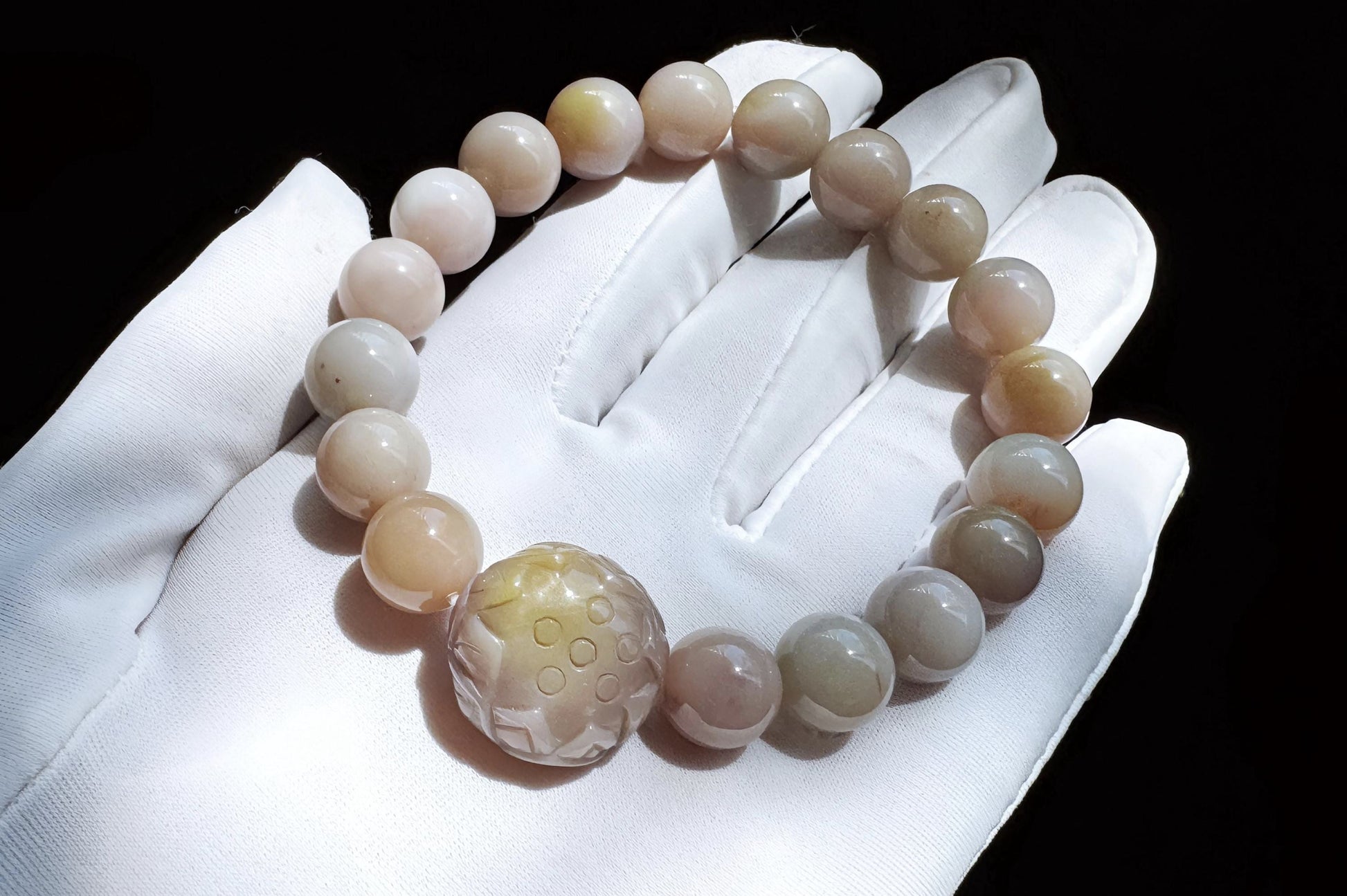 Natural Yanyuan Agate Beaded Bracelet in Pastel Colors and Carved Yanyuan Lotus Charm, 天然盐源玛瑙马卡龙色系圆珠手串搭配盐源莲花珠