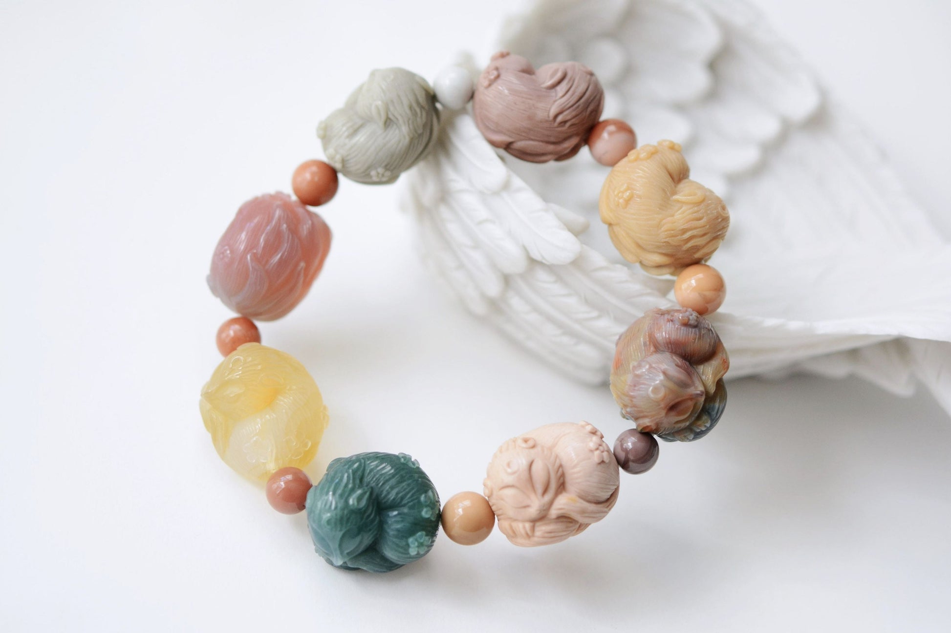Top Grade Natural Alashan, African, and Hulun Buir Agate Hand Carved Nine Tailed Fox Bracelet, 天然原矿玉化阿拉善非红玛瑙呼伦贝尔玛瑙手工雕刻九尾趴趴狐手串