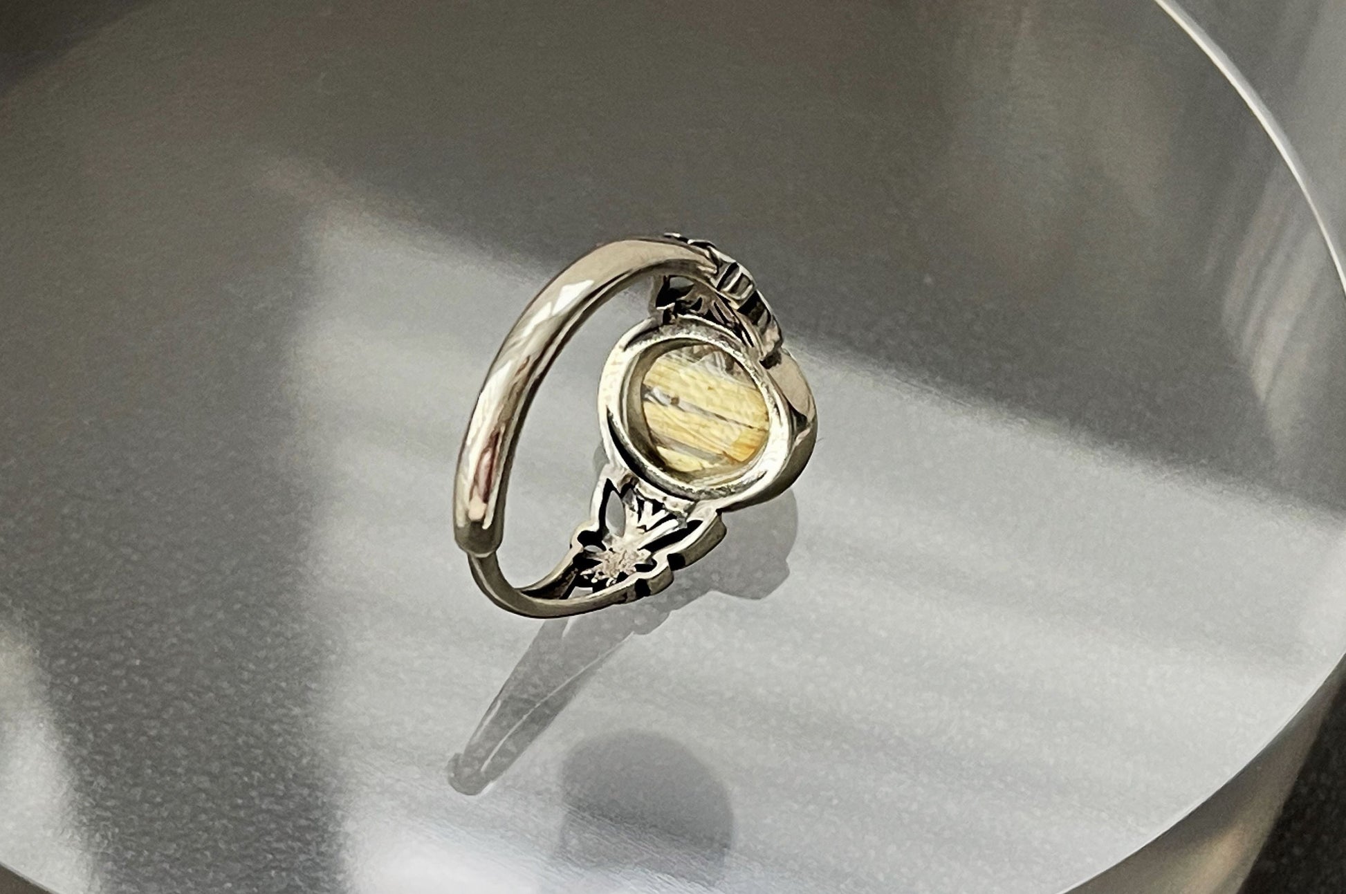 Top Grade Natural Golden Rutile Quartz Ring S925 Setting, Natural Golden Rutilated Quartz Ring, 天然钛晶板钛猫眼戒指925纯银戒托