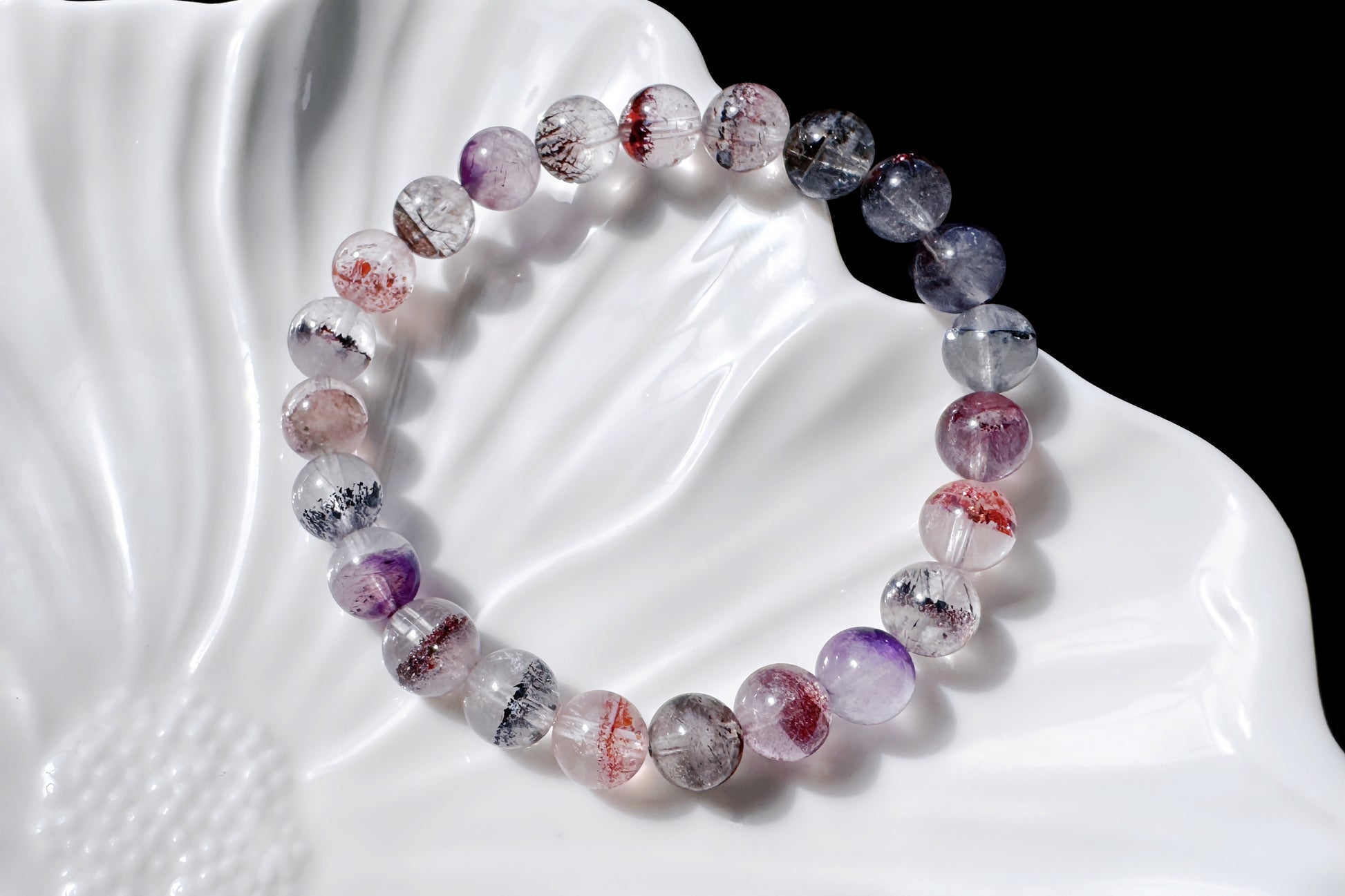 8mm Natural Super Seven Quartz Beaded Bracelet, Rare Venom Super Seven Bracelet, Venom Super 7 Crystal, 天然超级七手串毒液超七手串
