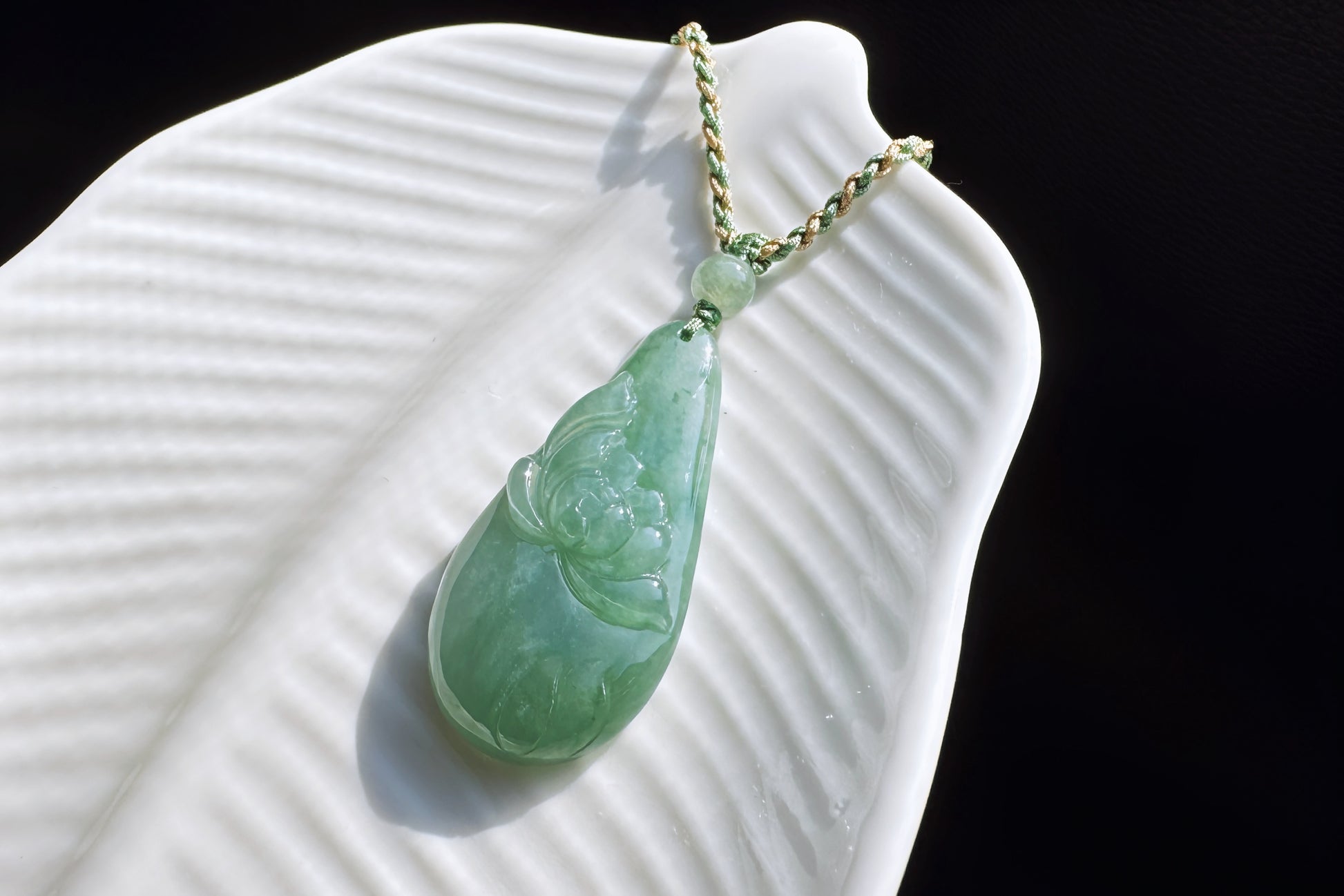 Certified Natural Grade A Jadeite Jade Pendant, Carved Jade Lotus Flower Pendant, 天然缅甸A货翡翠老坑冰晴绿随形荷花吊坠